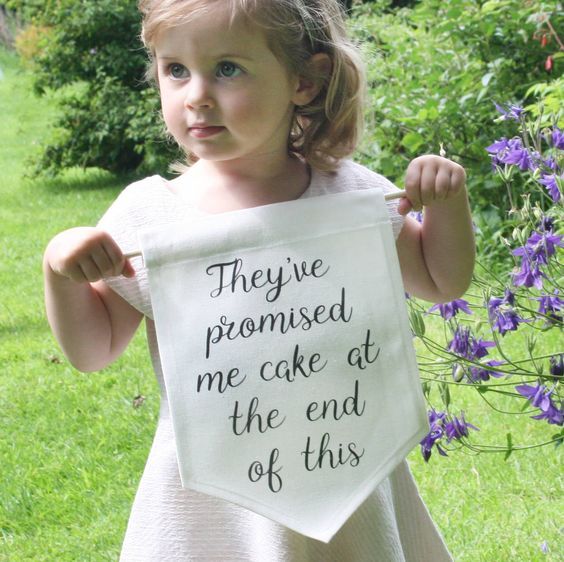 Existem várias alternativas pra adicionar humor ao casamento, muito lindas, como por exemplo a plaquinha dessa daminha aqui: